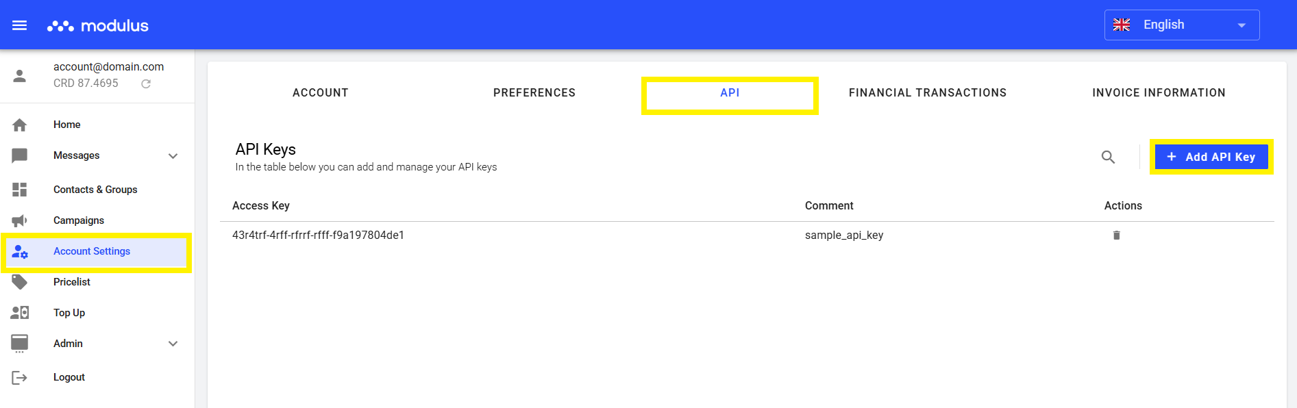 Για την έκδοση του API key, συνδεθείτε στον λογαριασμό σας στην πλατφόρμα mMP και ανατρέξτε στο “Account Settings” μέσα στο sidebar, όπως φαίνεται παρακάτω: