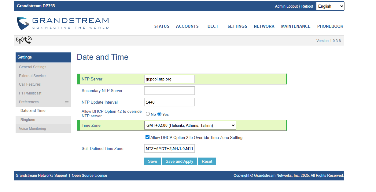 - NTP Server: gr.pool.ntp.org