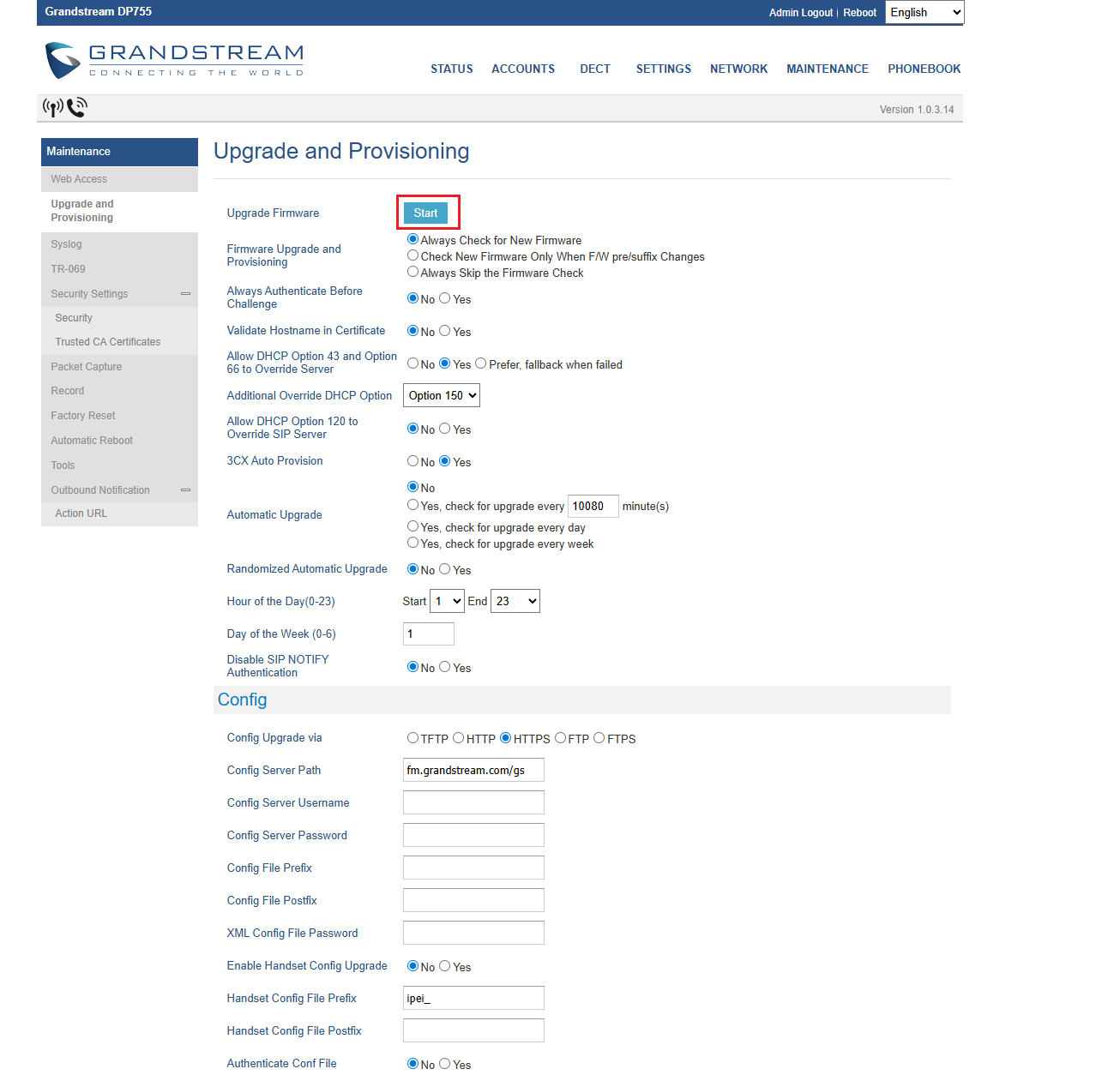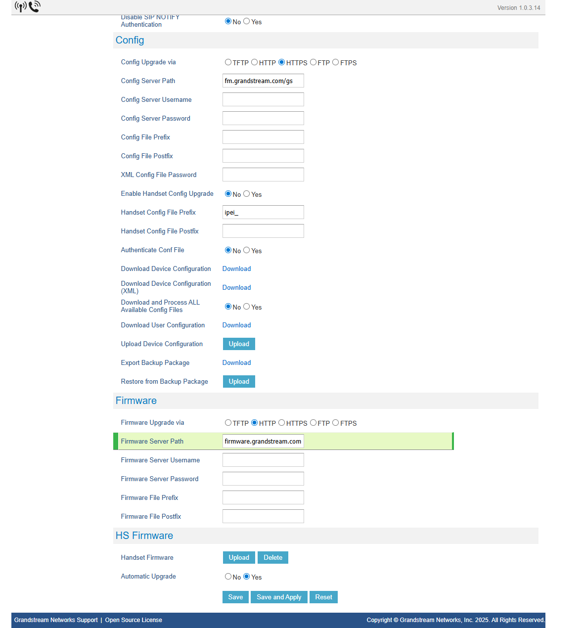 - Firmware Server Path: firmware.grandstream.com