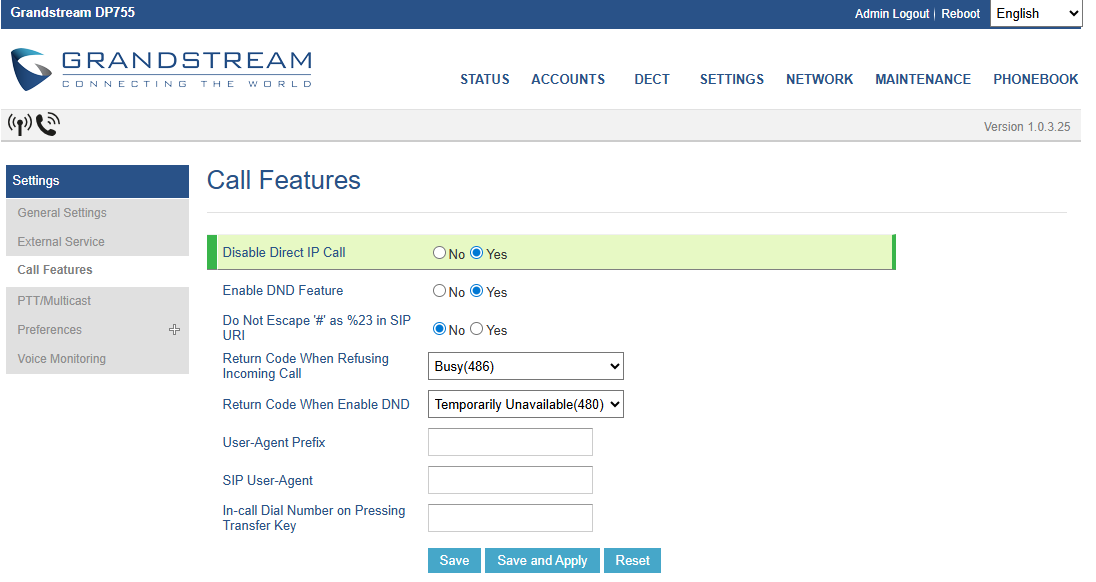 - Disable Direct IP call: Yes