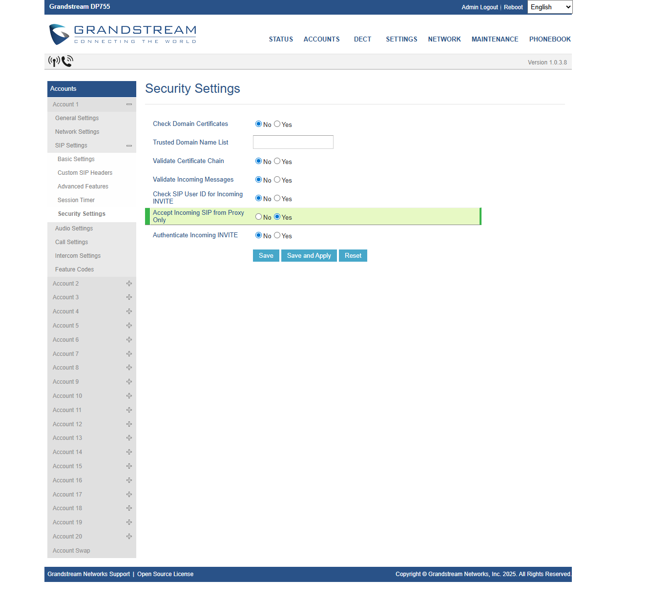 - Accept Incoming SIP from Proxy only: Yes