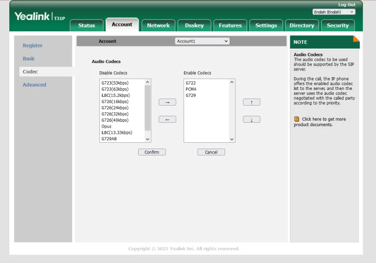 - Στην Καρτέλα Account > Codecs μετακινείστε τα Codecs με τα βελάκια ώστε στο δεξί πινακάκι να υπάρχουν με τη σειρά τα εξής: