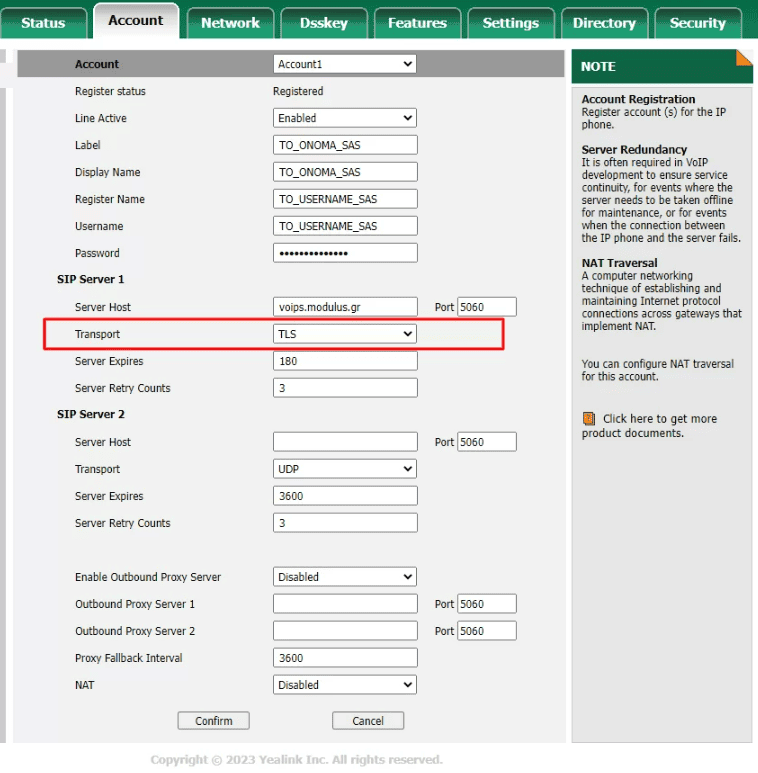 - Στο μενού Account → Register → Server Host Port αλλάξτε την τιμή από 5060 σε 6050.