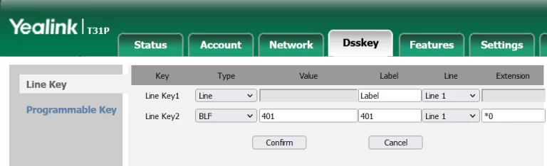 Επιλέξτε την καρτέλα Dsskey > Line Key. Στο πλήκτρο που θέλετε να παραμετροποιήσετε ορίστε: